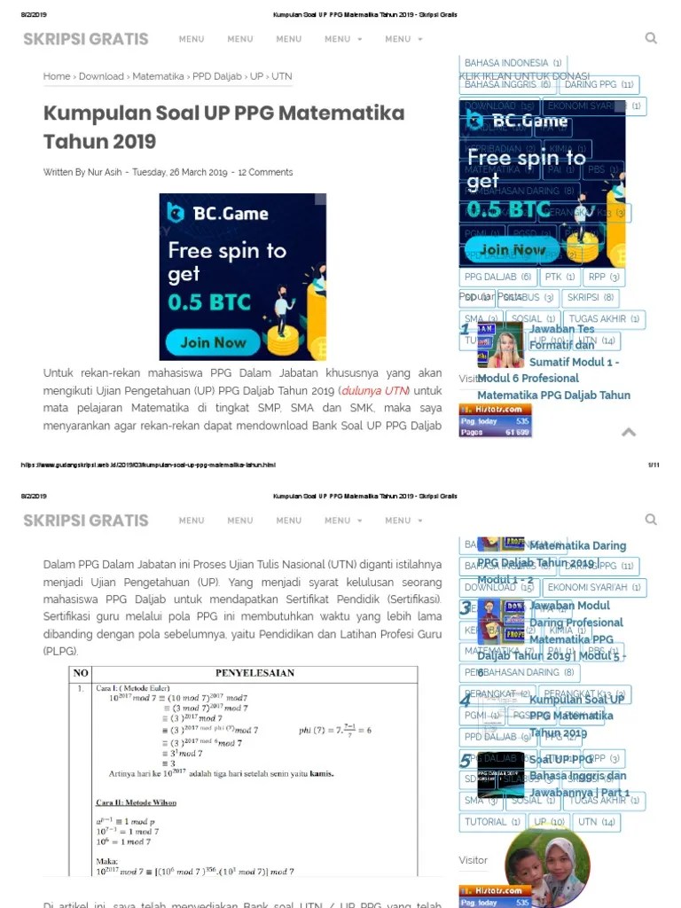 soal umptkin dan kunci jawaban.prediksi soal dan kunci jawaban um ptkin 2019 ipa ips dan ipc bagi anda yang ingin mengikuti ujian seleksi umptkin 2019 pada kelompok ujian yang dipilih maka pada bulan mei anda harus siap untuk menghadapi seleksi tersebut secara serentak di seluruh ptkin. Kumpulan soal soal latihan ujian ppg blog pak pandani. Kumpulan contoh soal ppg 2019 untuk tk sd smp sma. soal dan pembahasan yang upload semoga bermanfaat, jangan lupa share kepada bapak ibu guru yang lain. Download soal latihan pretest ppg (password: